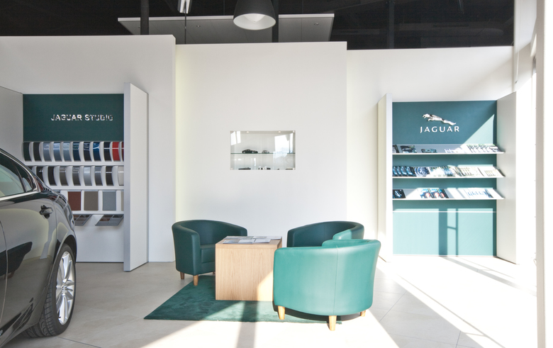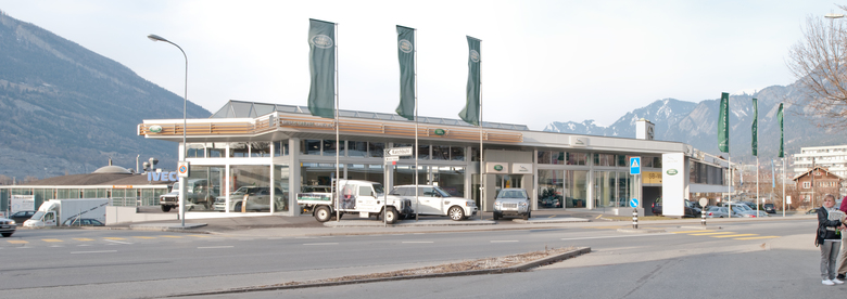 Das Areal der Dosch Garagen AG in Chur West liegt an einer strategisch prädestinierten Lage. Definiert wird die Parzelle durch die Kasernenstrasse auf der Frontseite und durch die Comercialstrasse auf der Rückseite. Vierseit erschlossen ist das Areal ideal für Verkaufsräume. Das Gesamptkonzept sieht eine Art Blockbebauung vor, in welcher sich im Kern die Betriebsinfrastruktur um den heutigen Hof befinden, und der Strasse entlang die Verkaufsflächen, welche die Produkte ideal präsentieren lassen. Die Idee einer Promenade, welche den Kunden von Showroom zu Showroom, von Automarke zu Automarke führt, bildet das Leitmotiv der Konzeption. Die erste Etappe beinhaltet die Erneuerung des Showrooms Landrover/Jaguar.