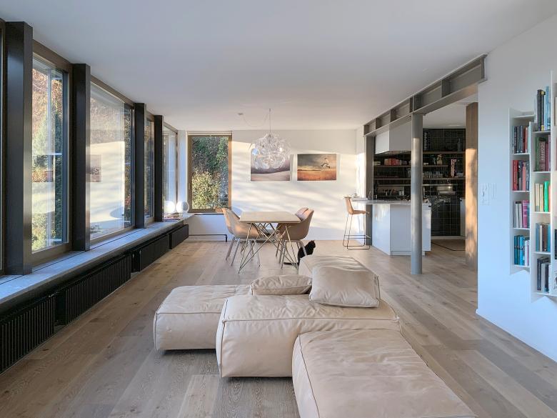 Das Haus am Kamellenberg wurde 1962 erbaut und 2013 letztmals einer Innenraumsanierung unterzogen. Wunsch der Bauherrschaft war es, sämtliche Fenster zu erneuern und wo möglich neue Fensteröffnungen einzubauen oder zu vergrössern. Aussen + Innenräume verschmelzen neu harmonisch zu einer stimmigen Einheit. Nach der Umbauphase Ende Sommer 2021 zeigen sich die beiden Wohngeschosse in einem völlig neuen Kleid - so verstehen wir Transformation im Bau.