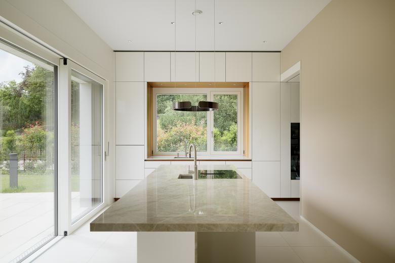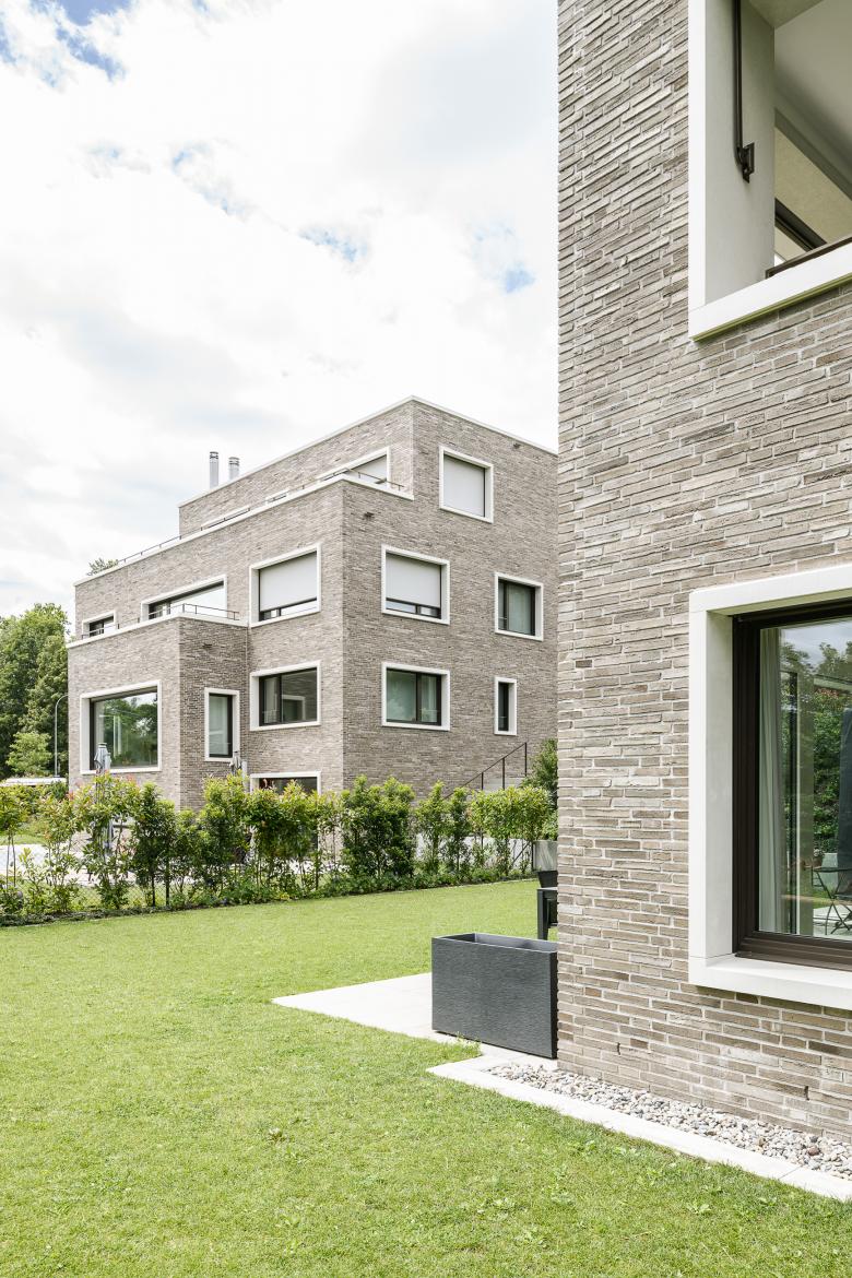 Durch die Grundstücksarrondierung und dem frei werdenden Parkplatzbereich der Strassenparzelle entsteht ein neues Baufeld. Mit der Überbauung Sonnenhaldenstrasse sind zwei Neubauten geplant, die sich mit einem quartiersüblichen Strassenabstand an der Goethestrasse orientieren. Im südlichen Bereich ist das private Einfamilienhaus, im nördlichen Bereich ein Mehrfamilienhaus mit sechs Eigentumswohnungen geplant. Die beiden Bauten sind durch die gemeinsame Tiefgarage miteinander verbunden, deren Einfahrt von der Sonnenhaldenstrasse erfolgt. Die Neubauten werden in Massivbauweise mit einer hinterlüfteten Klinkerfassade in erdigen Farbtönen erstellt. Der grosse Garten wird durch eine Bepflanzung mit Sträuchern zur Strasse abgeschlossen. Die durchfliessende Landschaft bettet die beiden Punktbauten in den Grünraum ein so, dass die Volumen im Strassenbild zurücktreten.