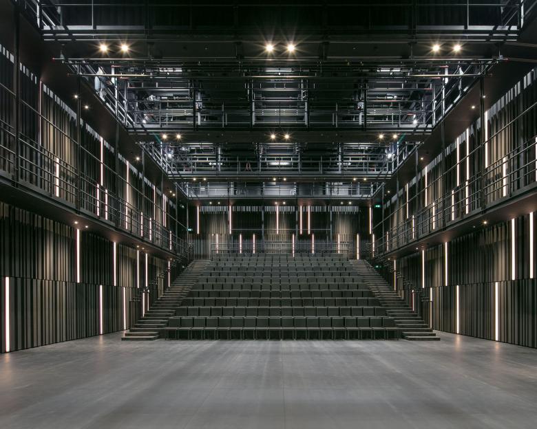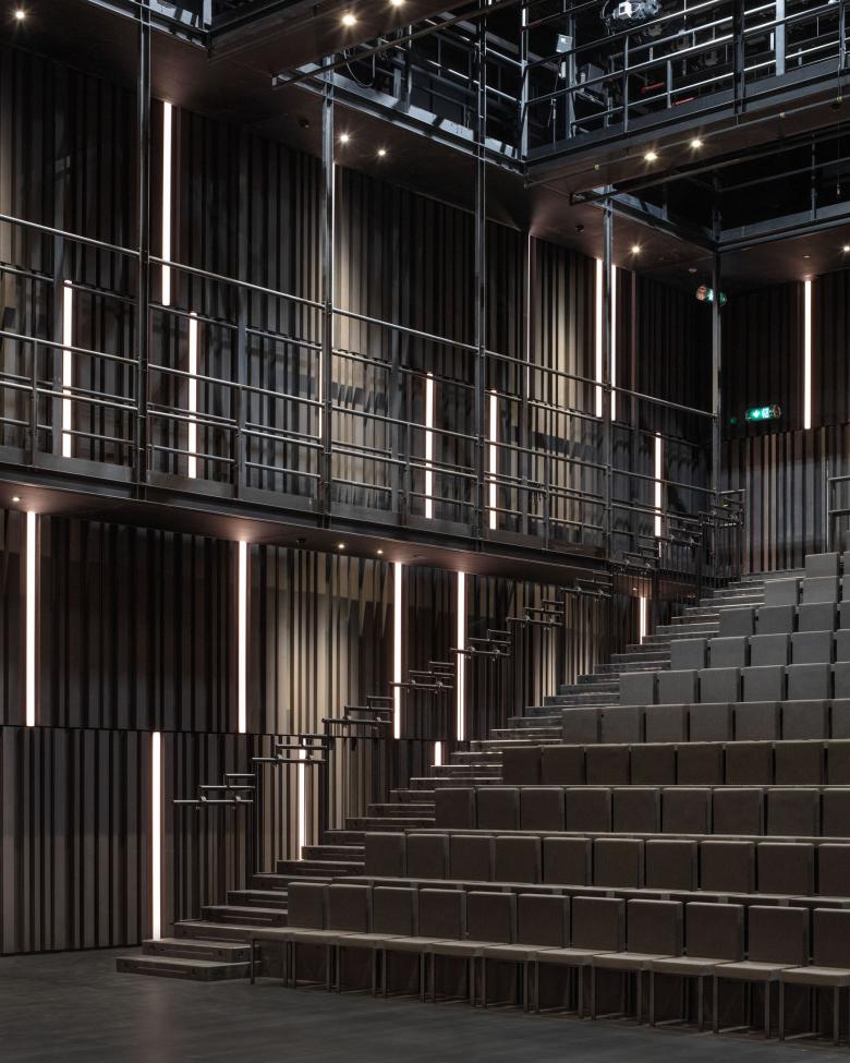 The two halls are highly technical spaces from a scenography point of view. The objective was to integrate all the technical requirements into the architectural expression while creating a poetic space capable of welcoming the spectator by creating a break between everyday life and the magic of the show.