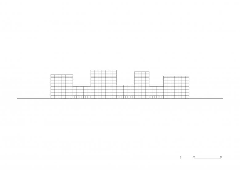 Where classical theaters distinguish the stage tower as the central element of the building's composition, the characteristic crenellated profile of the project expresses the multiplicity of activities taking place in the new theater.