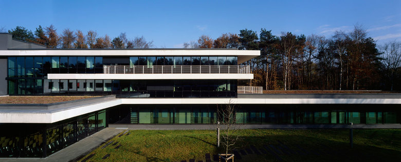 Durch ein Gastwissenschaftsprogramm bekommt die Forschungsarbeit neue Impulse, auch der wissenschaftliche Nachwuchs wird hier gefördert. Die Fassadengestaltung nimmt in Proportion und Materialität den Wunsch nach einem offenen, einladenden Gebäude auf. Bestimmendes Merkmal der äußeren Gestalt sind starke, auskragende Deckenscheiben, die an der Zugangsseite im Süden sowie zum Hof hin das Gebäude horizontal gliedern und dabei eine signifikante Fernwirkung erzeugen.