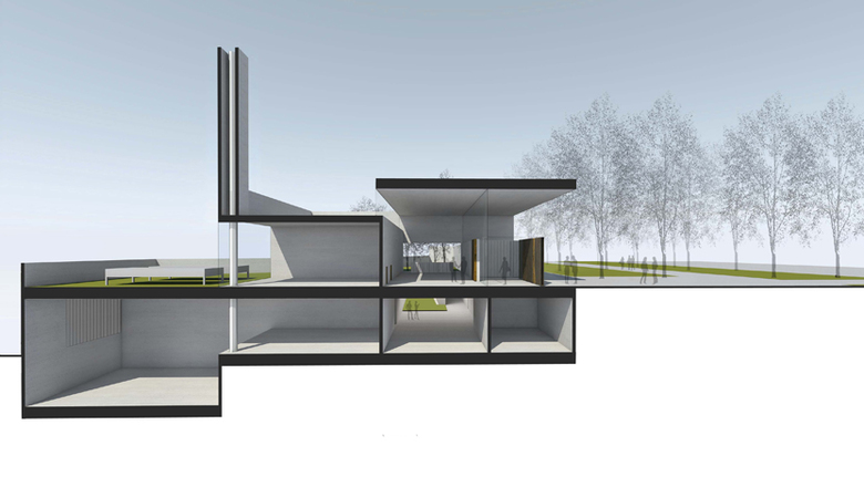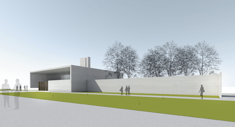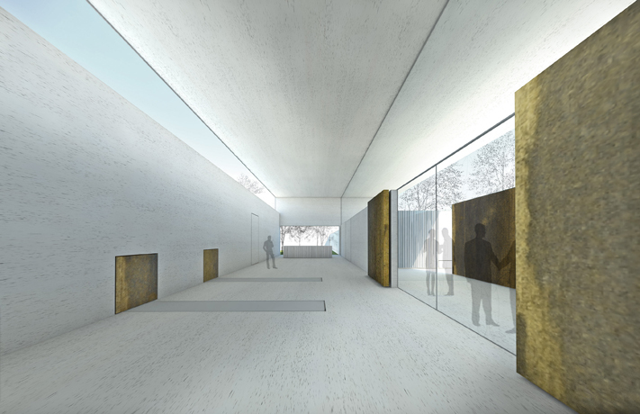 Über Schwellenbereiche wird deutlich gemacht, dass man einen Ort des Gedenkens betritt. Man lässt dem Besucher Zeit, sich beim Durchschreiten der Lindenallee darauf einzustellen, bis man auf eine offene Vorhalle für das Versammeln vor der Kremierung trifft. Bei aller Solidität des Baukörpers wird durch den Abstand vom gewachsenen Terrain eine Leichtigkeit vermittelt, die den Besucher aufrichten soll.