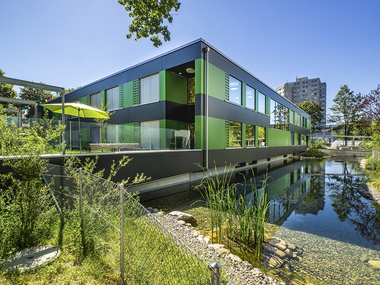 Das Haus am Teich ist eine geschützte Abteilung des Lindenfeld, geplant als Haus für mobile, weglaufgefährdete, demente Bewohner und Bewohnerinnen. Das Haus soll in sich als kleines Dorf funktionieren, das auf 2 Geschossen organisiert ist. Die Gehrampe verbindet die 2 Geschosse, macht das Haus mit dem Innenhof zusammen in der Vertikalen erlebbar und öffnet von verschiedenen Orten Ein- und Ausblicke. Der Rundlauf durchs Haus setzt sich über die verschiedenen Aufenthaltsbereiche im Garten fort. An den drei verschiedenen Aufenthaltsbereichen kann der Garten aus geschützten Bereichen heraus beobachtet oder betreten werden. An heissen Tagen oder in der Übergangszeit lässt sich im Innenhof angenehm draussen verweilen. Im Obergeschoss ist eine separierte Bürofläche geplant, die die knappe Bürofläche im Lindenfeld ergänzt.