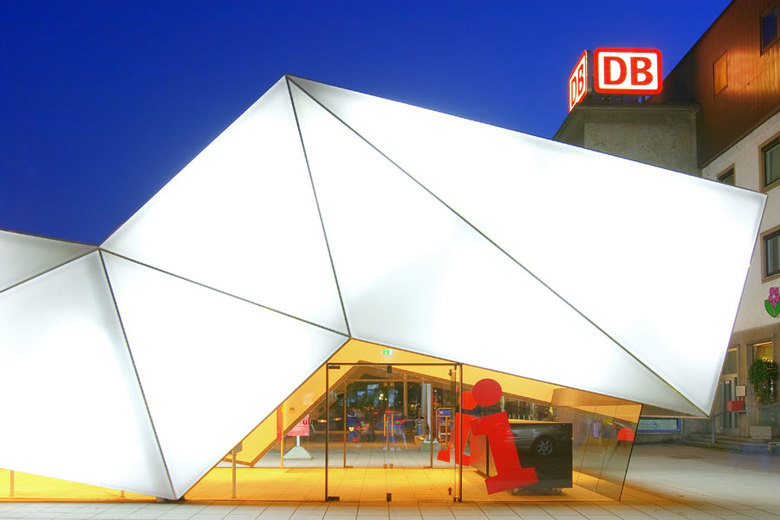 Gleislinien verbinden Städte. Ulm als Bestandteil der sich im Ausbau befindenden innereuropäischen Magistrale Paris Budapest wird zum thematischen Ansatz des Entwurfs. Aus dem abstrakten, geographischen Umgang mit den vernetzten europäischen Metropolen und Ulm entwickelt sich der gefaltete Baukörper. Die Lage des Gebäudes ist innerhalb des Baufeldes entsprechend der Magistrale ausgerichtet. Die gefaltete, expressive, leuchtende Hülle markiert als dynamisches Zeichen den Platzbereich vor dem Bahnhof und weckt Interesse.