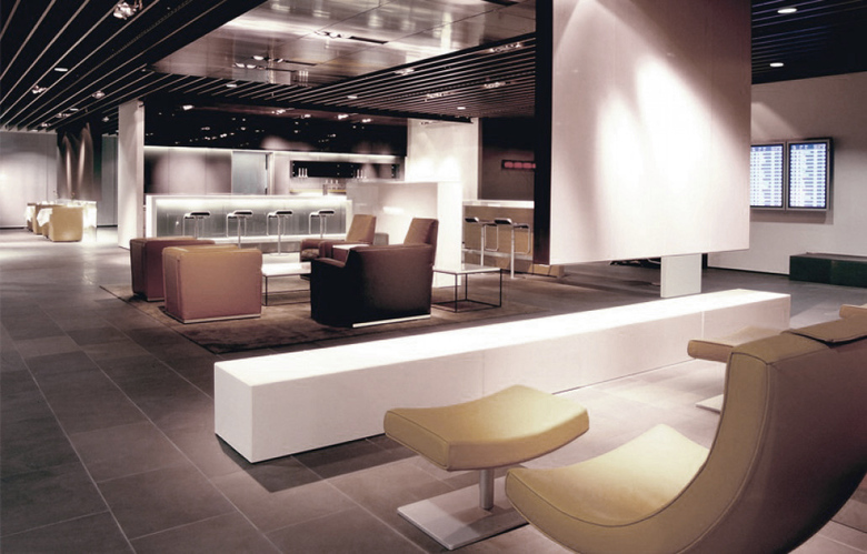 2003 wurde das Büro Hollin+Radoske beauftragt, ein neues Loungekonzept für die Deutsche Lufthansa AG zu entwickeln und die ersten Lounges am Flughafen Frankfurt zu bauen. Das Design wurde modular aufgebaut, da es in die unterschiedlichsten Räumlichkeiten im Bestand implementiert werden muss. Aufgrund des jeweiligen Raumzuschnitts, Budgets oder Nutzungsprofils können einzelne Module ausgewählt und zu einer Lounge geformt werden. Zu den Design-Modulen gehören z.B. verschiedene Raumteilersysteme, Deckensegel, verschiedene Wandoberflächen, Objekte im Raum und Bodenbeläge, die je nach Anforderung gezielt eingesetzt werden können. Die Richtlinien und Detailpläne wurden in einem umfangreichen Design-Manual fixiert, mit dem zukünftige Lounges geplant werden können. Um das modulare Design hochwertig, markant und funktional zu halten, folgt das Design bestimmten Grundsätzen wie leichte Orientierung, subtile Corporate-Identity, Wiedererkennbarkeit und Modularität.