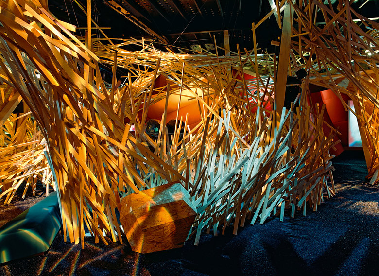 Im Inneren wabern, einer Wunsch-Rauchschwade gleich, abertausende von Holzlatten durch den Ausstellungsraum, formen Räume und Wege und integrieren die thematischen Wunschkapseln. In vier kristallförmigen Einbauten werden die Interviews auf Monitoren oder als Projektionen gezeigt. Kleine Figuren aus der Märchen- und Mythenwelt, die von Wünschen oder für Wünsche leben, dominieren das Innenleben. Gnom, Fee, Sirene, Zauberer und Wunschprinz führen die Besucher durch ihr Universum und sprechen sie direkt an. «Warum bist du noch hier?» «Hast du schon deinen Wunsch abgegeben?»
