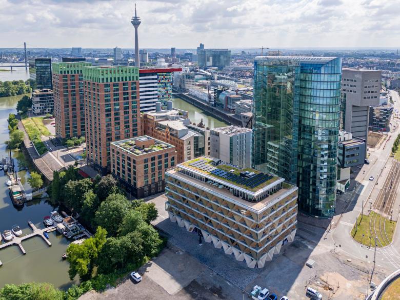 Identitätsstiftend und zirkulär: The Cradle ergänzt die prägnante Architekturvielfalt im Düsseldorfer Medienhafen um ein gesundes Gebäude - nicht nur für die vielfältige Mieterschaft