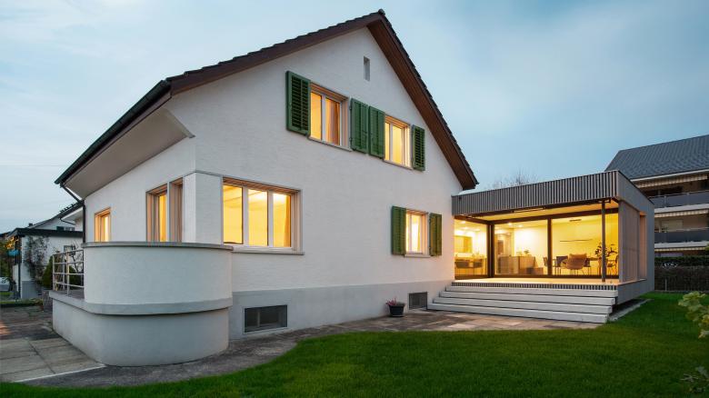 Das bestehende Einfamilienhaus, welches zu Beginn der zweiten Hälfte des 20. Jahrhunderts erbaut wurde, wird um einen sorgfältig gestalteten Anbau ergänzt.