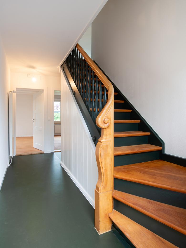 - Aufgefrischte Buchenholzdielen im Wohnbereich