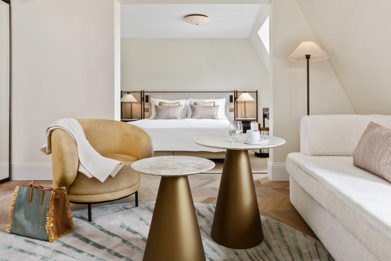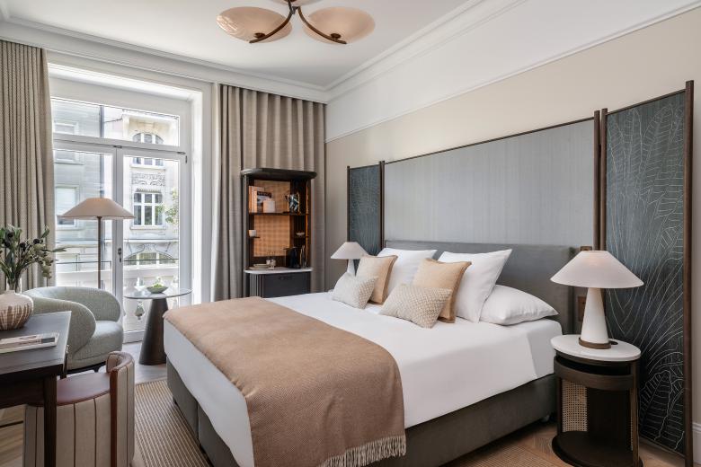 The hotel includes 44 rooms and suites spread over 5 floors. Each floor evokes the history of Switzerland's textile trade with different countries or regions. Thus, attributes of Spain, France, England, India and Asia can be found in fabrics, inlays and decorative elements. Overall the room design is a lyrical interpretation of a voyager’s lifestyle at the turn of the century.