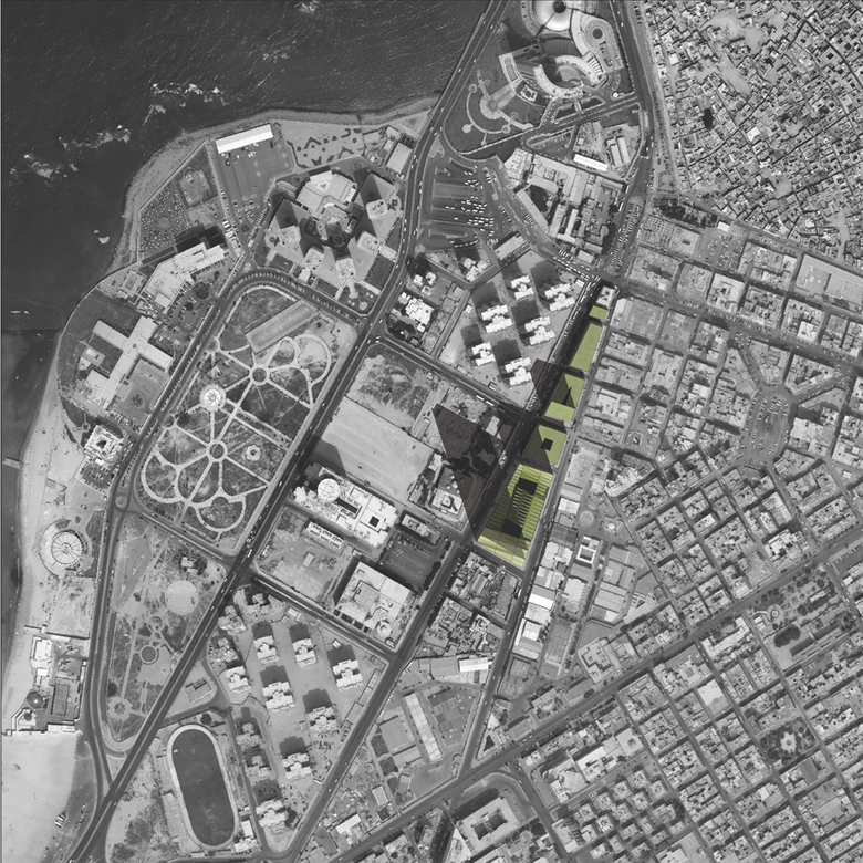 Libyen ist ein Land im Wandel. Aufbruch, Tradition und eine jahrtausend alte, vielfältige Kultur sind die bestimmenden Qualitäten. Der Entwurf für einen Hotel-, Appartement-, Büro- und Einzelhandelskomplex vereint hochwertige Ingenieurbaukunst, eine poetische Vision und Beziehungen zu typisch arabischer und libyscher Tradition. Entgegen der üblichen Solitärstellung von Hochhäusern ist eine Teilung der Bauaufgabe in verschiedene Bereiche vorgesehen: der Büroturm, der Sockel mit zwei Höfen, der Hotel- und Appartementturm, die Untergeschosse. In den Sockelgeschossen, das verbindende Element zwischen den beiden Türmen, sind die Einzelhandelsflächen und der Konferenzbereich angeordnet.