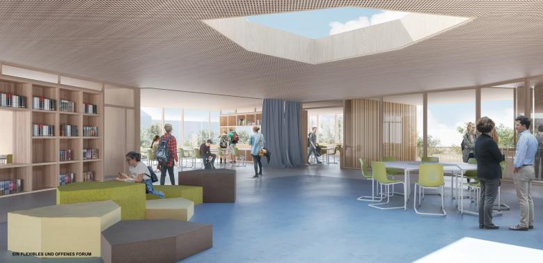 Der Neubau des Gymnasiums in der Schulstraße in Berlin-Wedding integriert sich durch seine klare Gliederung und vielseitige Architektur in das heterogene städtische Umfeld. Das Konzept des „Lernkiez im Quartier“ schafft eine enge Verbindung zwischen Schule und Stadt, wobei die Schule in kleinere, identifikationsstiftende Einheiten unterteilt wird. Durch die flexible Raumgestaltung und die modulare Bauweise wird ein anpassungsfähiges Gebäude geschaffen, das zukunftsorientierte pädagogische Konzepte unterstützt. Die Verwendung von Holz und Beton als Baumaterialien fördert Nachhaltigkeit, während die großzügige Tageslichtnutzung und vielseitigen Außenflächen, wie grüne Dächer und Garteninseln, das Wohlbefinden und das Mikroklima verbessern.