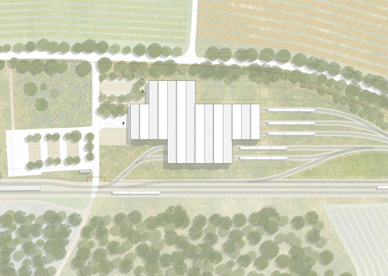 Unsere Konzeption für das neue Werkstattgebäude setzt auf eine klare, profilierte Dachlandschaft, die sich harmonisch in das Landschaftsbild einfügt. Die Form des Gebäudes nimmt gezielt Bezug auf traditionelle Landwirtschaftsbauten der Region, wodurch es nicht als Fremdkörper wirkt, sondern sich nahtlos in die Landschaft und Umgebung integriert.
