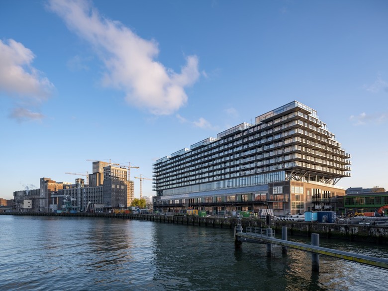 Mei’s proposal adds layers to the volume overlooking the Rijnhaven, where the scale and size of development along the water justifies the height and proportions of the addition. In contrast, a number of layers have been removed from the Veerlaan side so that it harmonises more with the lower scale of buildings in Katendrecht. At the same time, this height difference ensures that the new volume on top enjoys views in two directions, over Rijnhaven on one side and Katendrecht on the other.