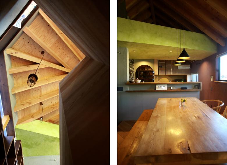 断面的には「インナーテラス」に玄関からも直接アプローチできるように、2つの階段を計画し、日常的にも立体的な回遊導線となるように考えています。