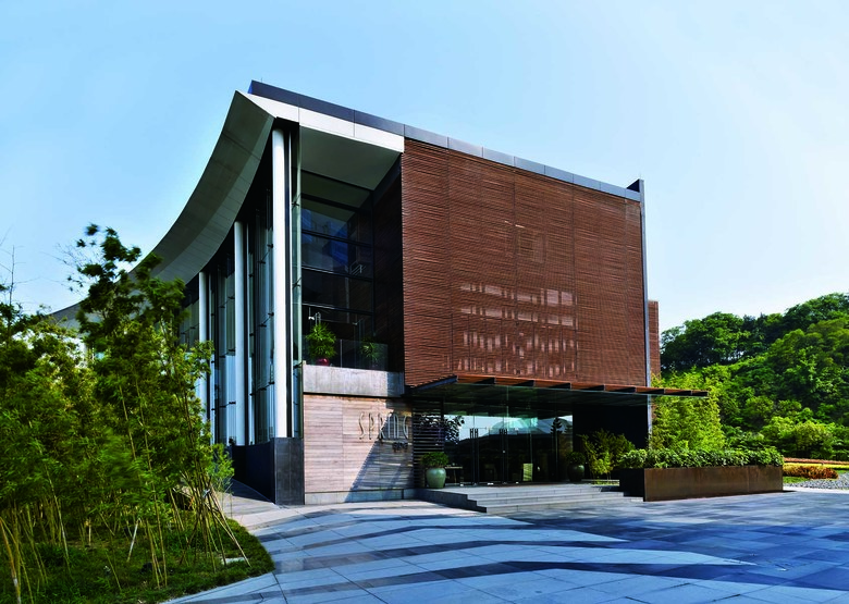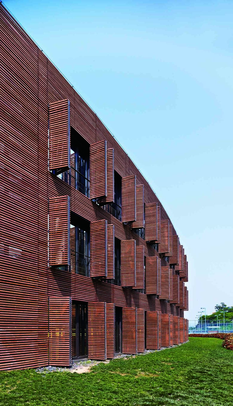 A group of independent,curved lines is a logical extension of the existing main building. A line of multiple cores is simply a rebellion against the single core.It brings in views with many angles and is easily appreciated through the path.