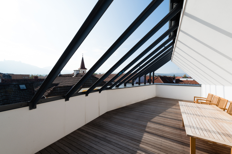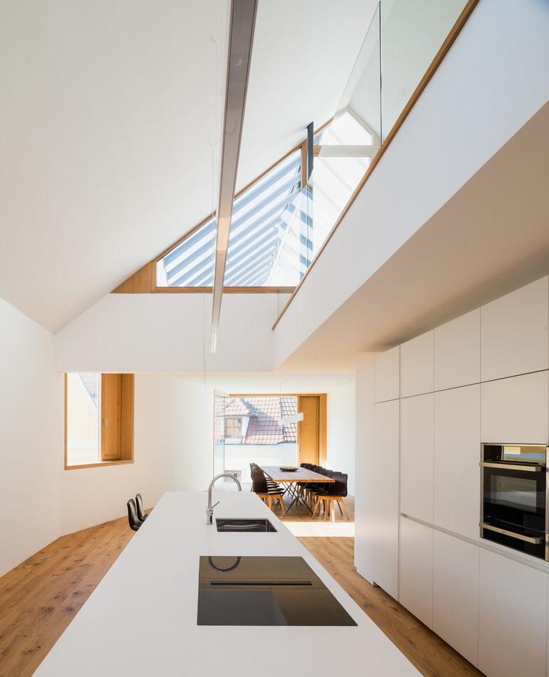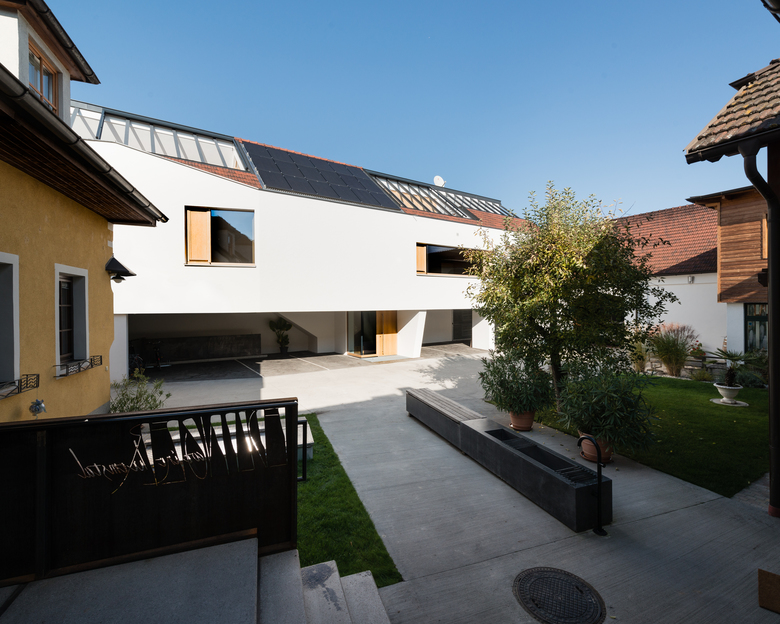 Und schlussendlich dann womöglich auch noch der Test aller Tests, die Blindbegehung: Vom Innenhof die Treppe hinauf, durch den Wohnbereich mit Küche und großer Tafel, weiter in den Schlafbereich, ins Bad, dann noch höher hinauf auf die beiden Terrassen und – die frische Luft aus den umliegenden Weingärten in die Lungen ziehend – hinein in die Sauna, dann wieder zurück und noch einmal alles von oben nach unten. Wo stockt es? wo sind Hürden? wo gar Barrieren? wo riecht es wie und warum? wie strömt es? wie betastet es sich? und unzählige weitere Kriterien, an die unsereiner nicht im Traume denkt.