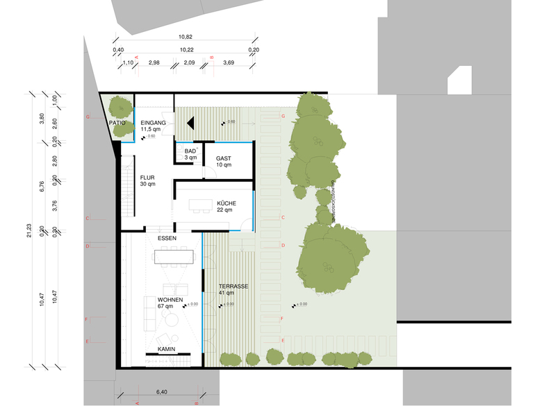 Der Entwurf wurde für einen Wettbewerb für ein Einfamilienhaus in einer zentralen Frankfurter Nachbarschaft entwickelt. Obwohl das Haus R von angrenzenden Gebäuden umgeben ist, bietet die vorgeschlagene Architektur ein hohes Maß an Privatsphäre, wobei Transparenz und Interaktion mit der Landschaft erhalten bleiben. Eine spielerische Kombination aus wechselnden Ebenen und offenen Hohlräumen sorgt für ein inspirierendes Interieur, das sich auf den großen Wohn-Essbereich in doppelter Höhe als soziales Zentrum des Hauses konzentriert. Der Entwurf wurde mit dem zweiten Preis ausgezeichnet.