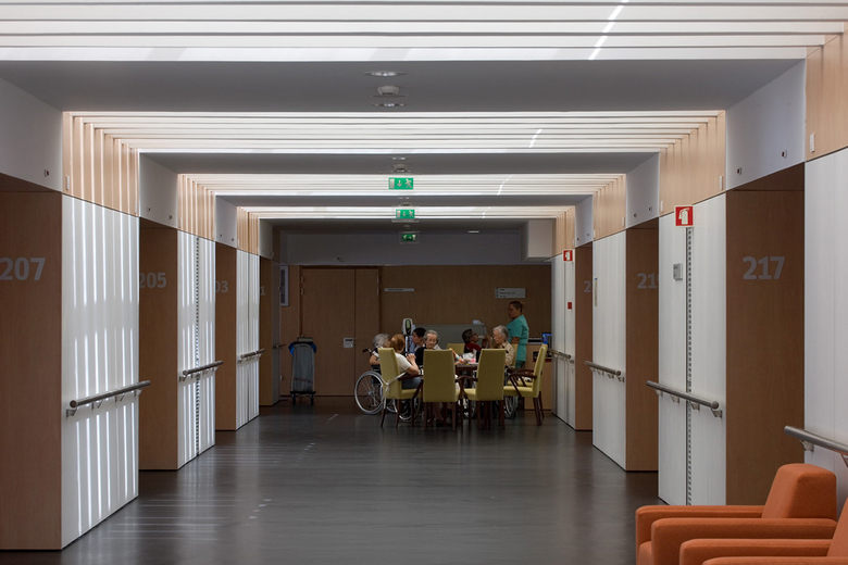 Se propuso el derribo de una parte del edificio existente y la rehabilitación de la parte de mayor interés arquitectónico, con el objetivo de implementar en esta área las zonas asistenciales, los espacios de apoyo y las zonas comunes del hospital. La estructura, distribución, funcionalidad y tipología del ala anexa fueron pensadas para dar respuesta a los requisitos del programa y al confort de los usuarios. El proyecto se desarrolló en dos fases para acomodarse a la capacidad requerida con el paso del tiempo; por eso, en la segunda fase se aumentaron el número de habitaciones y las áreas de algunas salas, y se cambió el uso de algunos espacios. En la primera fase, el edificio nuevo conforma una C invertida; en la última fase se agrega un bloque para terminar de conformar esa G invertida en planta.