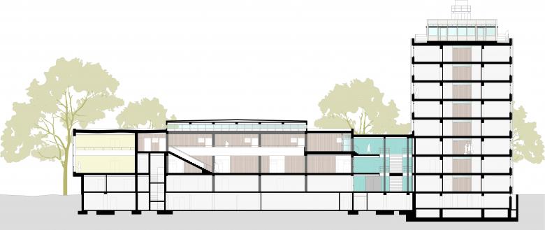 Die Architektur von Gerichten steht in einem besonderen Spannungsfeld: Sie muss repräsentativ sowie robust und beständig sein, ebenso einladend wie sicher. Die Gebäude des Gerichts aus dem Jahr 1962 von Atmer und Marlow spannen gestalterisch diesen Bogen, entsprachen aber nicht mehr den heutigen technischen und funktionalen Ansprüchen.