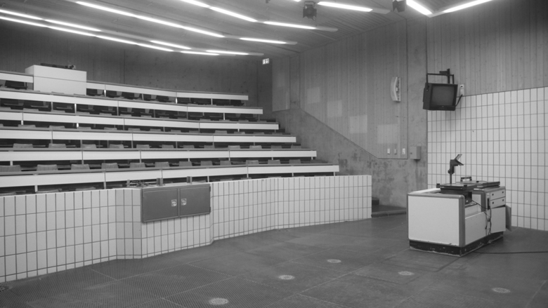 Im Hörsaal wich das Bild von klassischen weissen Fliesen einer schlichten roten Farbführung, die schwermütige Inneneinrichtung wurde ersetzt und die Haustechnik an die heutigen Bedürfnisse angepasst. Wie eng die Verbindung zwischen Mensch und Tier in diesem Bereich der Universität Zürich ist, unterstreicht ein umfunktionierter Futterwagen. Er dient als fahrbares Moderations- und Multimediapult.