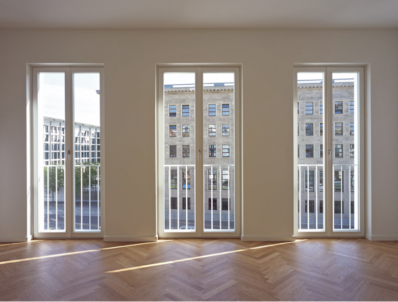 Das Haus stellt sich auf der 6,50 Meter breiten und 230 qm großen Parzelle als 5-geschossiges städtisches Wohnhaus mit einer Höhe von ca. 19 Metern dar. Das Grundstück wird vom 1. bis 4. Geschoss mit 12 Metern Haustiefe, im Erd- und Untergeschoss mit 18 Metern bebaut. Im Haus befinden sich drei Maisonett-Wohnungen.