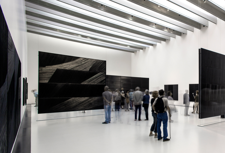 Crear un museo para Soulages, el pintor francés de “la luz”, que tan a menudo nos ha inspirado, era, y es, un sueño anhelado. Soulages, en su villa natal, se muestra como es: su aproximación, su actitud e implicación. Y el Forail, boulevard y espina dorsal de una topografía que domina el entorno de la ciudad mirando sus montañas lejanas, aspira a ser su lugar.