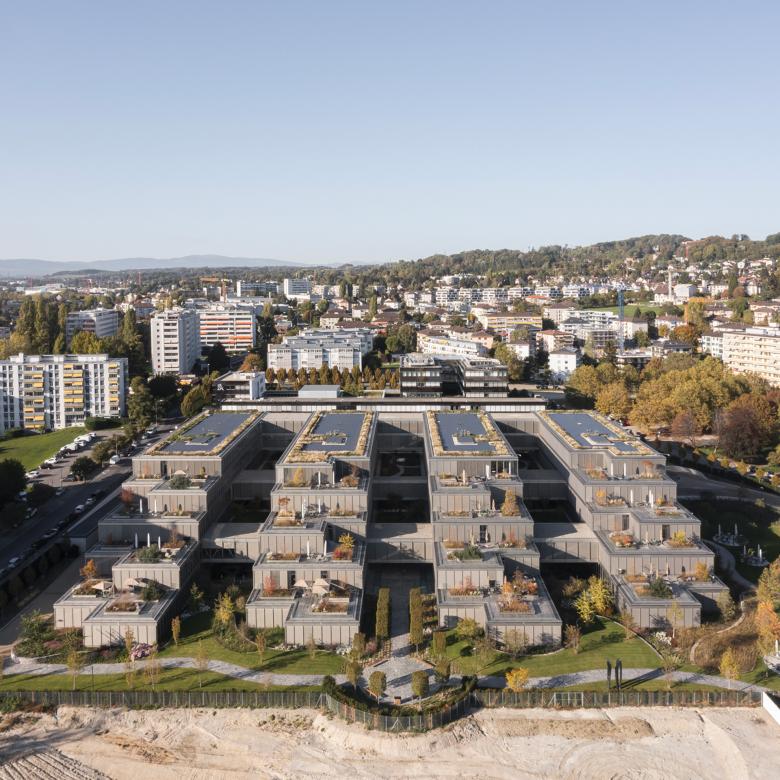 Cette première étape du projet se présente comme un bâtiment en peigne, un tapis accompagnant la topographie vers le lac, générant des généreuses terrasses, et entrelaçant les volumes bâtis et les espaces extérieurs végétalisés.