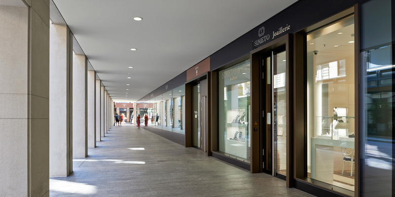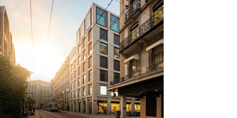 Dans un ensemble aux qualités techniques, architecturales, historiques et patrimoniales disparates, le projet offre un éventail complet de types et de niveaux d’intervention : un bâtiment est supprimé, un immeuble est démoli et reconstruit, dans le palais bancaire les façades sont maintenues alors que les dalles existantes, fragilisées par des interventions successives, sont reconstruites, deux bâtiments sont rénovés (changement des fenêtres, isolation des façades et rénovation intérieure), alors que pour le Passage des Lions, l’intervention cherche à préserver le maximum de substance de la construction initiale et à restaurer dans l’esprit d’origine les éléments remplacés.