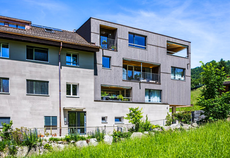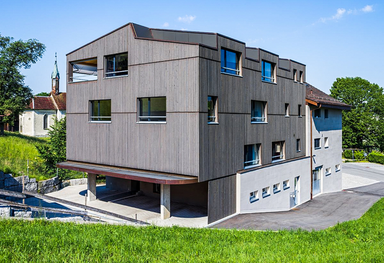 Am Rand des ISOS-Dorfzentrums von Dierikon soll ein "störender Bau" mit einem Anbau und Umbau des Bestandes aufgewertet werden. Ein dreigeschossiger Holzkörper wurde auf den gewerblich genutzten Sockel aufgelagert.