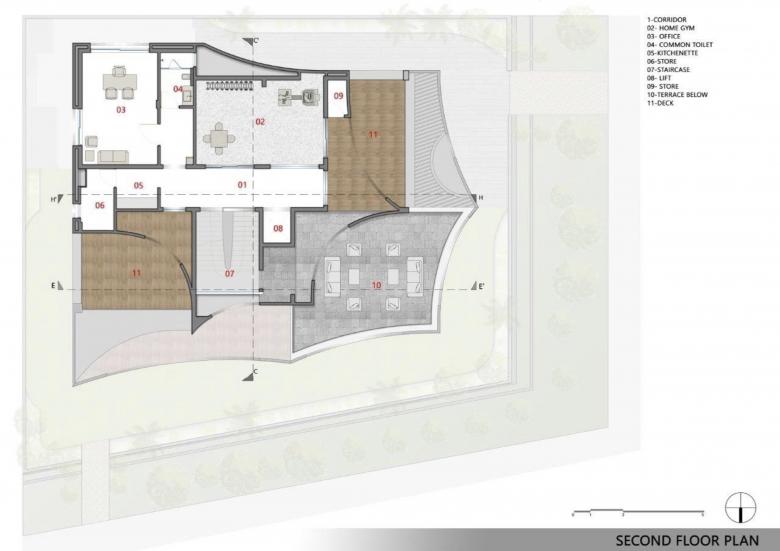 Designed for a family with 3 generations living together, the house has 3 levels, with 4 bedrooms, 2 living rooms, a gym, and a study.