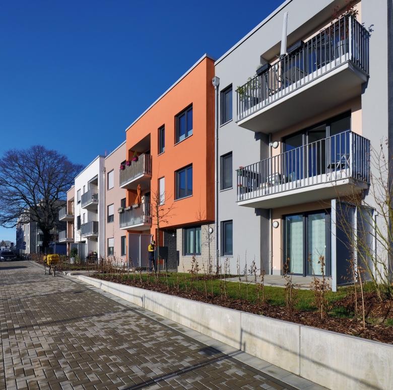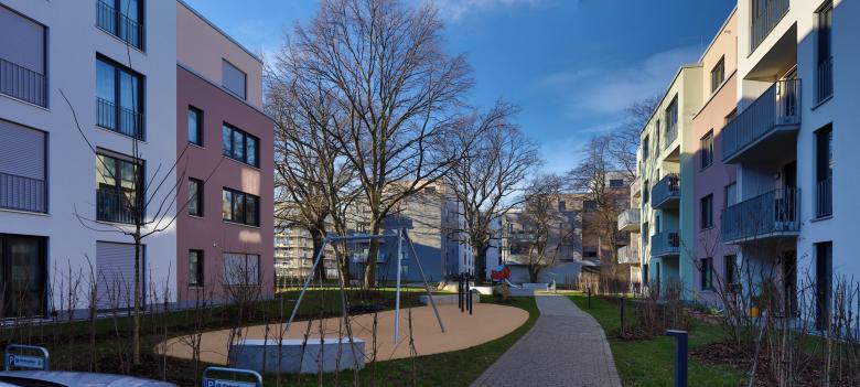In den drei Wohnblocks werden insgesamt 126 neue Ein- bis Vier-Zimmer-Wohnungen mit einer Wohnfläche zwischen 41 und 110 Quadratmeter geschaffen. Alle Wohnungen verfügen über großzügige Terrassen, Loggien bzw. Dachterrassen. Besonderen Wert hat der Bauherr auf ein nachhaltiges Energiekonzept sowie eine sinnvolle Wohnungsgestaltung gelegt: Die Energieeffizienz entspricht den Maßgaben des KfW-Effizienzhaus-55-Standards.