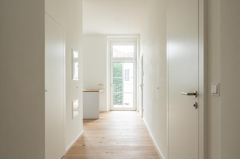 Insgesamt werden 19 Wohnungen im Bestand zu 25 Wohnungen umgebaut. Darüber hinaus werden im Erdgeschoss drei leerstehende Lokale renoviert.