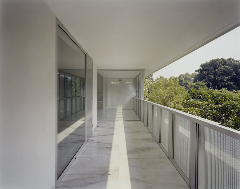 A central courtyard brings light and ventilation to all bathrooms that are kept away of the facades. The focus on a good coordination between structure and services resulted in services as technical rings without disturbing the main dedicated spaces and destroying the facades aesthetic. All HVAC systems are kept on the upper roof and travel through indoor shafts. A trench filled with white pebbles on the boundary wall achieves water harvesting.