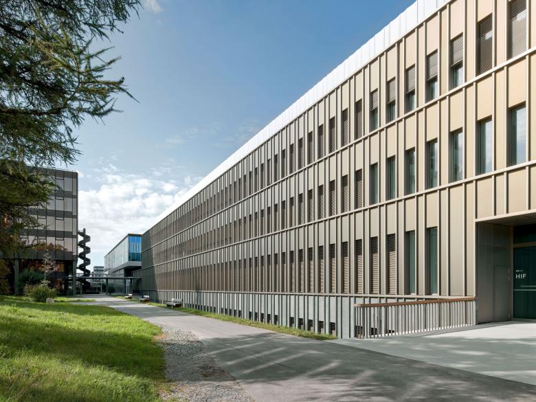 Die Gesamtsanierung und Erweiterung des Forschungsgebäudes HIF aus dem Jahr 1976 stellte eines der umfangreichsten Sanierungsprojekte auf dem ETH Campus Hönggerberg dar. Neben den hohen Anforderungen an die technische Ausstattung und die Nutzungsflexibilität spielte die Adressbildung eine wichtige Rolle. Der neue Hauptzugang am Laura-Hezner-Weg stärkt die Verbindung zwischen dem süd- und dem nordwestlichen Campusteil. Der grosse Erweiterungsbau, hauptsächlich mit modernen Labors bestückt, bildet eine Verlängerung des bestehenden Labor- und Bürogebäudes. Höhe und Materialisierung nehmen Bezug auf das benachbarte HIL-Gebäude. Planung und Ausführung erfolgten mithilfe der digitalen Gebäudedatenmodellierung, Big Open BIM.