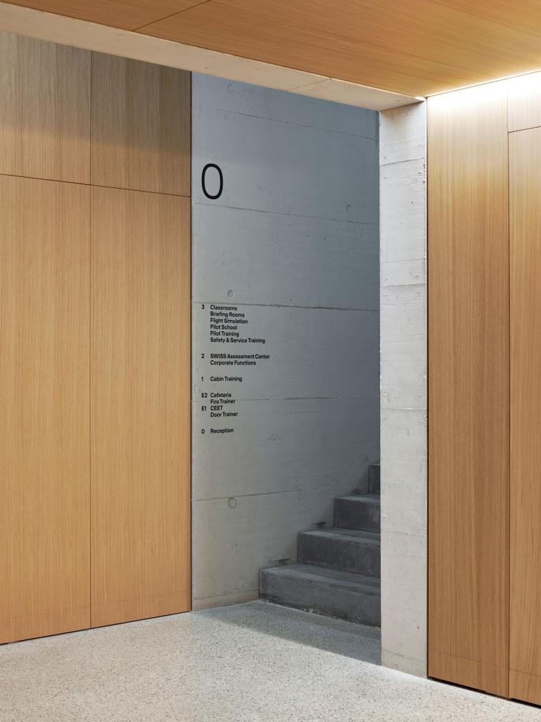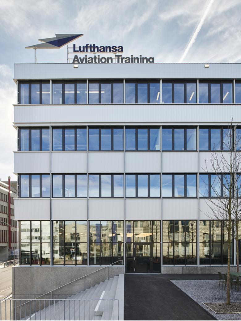 Büroräume. Das 2. Obergeschoss dient als Direktions- und Assessmentetage. Auf dem 1. Obergeschoss befinden sich Spezialräume für die Schulung der Flugbegleiter. Das Gebäude wird als Betonskelettbau ausgeführt. Die