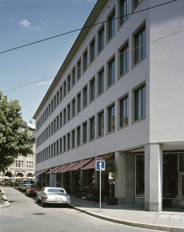 Das Projekt «UBS Grünenhof» kombiniert unweit von Bahnhofstrasse und Paradeplatz mitten in der Stadt Zürich die Themen Instandsetzung, Denkmalpflege und Neubau. Für die Gebäudeteile Grünenhof Ost, Süd und West war eine Totalsanierung vorgesehen, der partielle Ersatzneubau «Delphin» sollte das Ensemble komplettieren. Mit seiner präzisen Höhenstaffelung und der reduzierten Materialisierung fügt er sich diskret zwischen die beiden bestehenden Gebäude ein, gibt dem Block aber dennoch ein neues Gesicht. Auch die – denkmalgeschützte – Gebäudehülle des Bestands aus den 1940er-Jahren unterzog man einer Erneuerung. Dabei galt es, die energetischen Ziele in Einklang mit den denkmalpflegerischen Vorgaben der Stadt Zürich zu bringen, was mit einer Innendämmung gelang. Besondere Anforderungen stellte die komplexe Gebäudetechnik: Das Grünenhof-Areal ist kein autonomes Ensemble, sondern mit anderen, zumeist bankeigenen Liegenschaften verbunden. So beliefern die unterirdisch installierten Heizungs- und Kühlanlagen auch umliegende UBS-Gebäude mit Wärme und Kälte. Die Sicherstellung eines kontinuierlichen Betriebs während der Bauarbeiten war daher essenziell. In einem Zeitraum von knapp drei Jahren entstanden auf nahezu 4000 m2 Grundfläche neue Büro- und Geschäftsflächen von 14‘000 m2. Der renovierte und erweiterte Grünenhof vereint rund 900 Arbeitsplätze, ein Konferenzzentrum und exklusive Ladenflächen unter einem Dach.