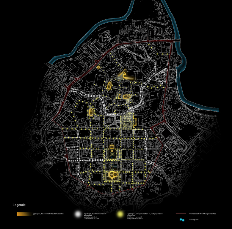 Das Licht interagiert im idealen Fall mit städtebaulichen Beziehungen, räumlichen Abfolgen und Strukturen sowie wichtigen Bauwerke. Neue innerstädtische, stimmungsvolle (Licht-) Räume prägen einen nächtlichen öffentlichen Lebensraum mit einer ortstypischen Identität und Aufenthaltsqualität.