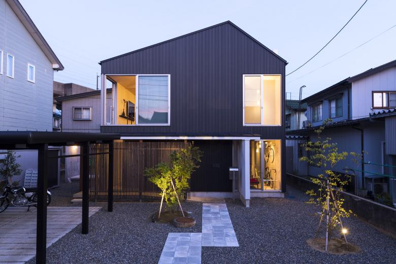 そしてそこから屋外にまで伸びる壁や建物外周に設えられた雁木空間をきっかけとして、住み手の多様な趣味や日常は外へ外へと大きな敷地の余地に展開していく。