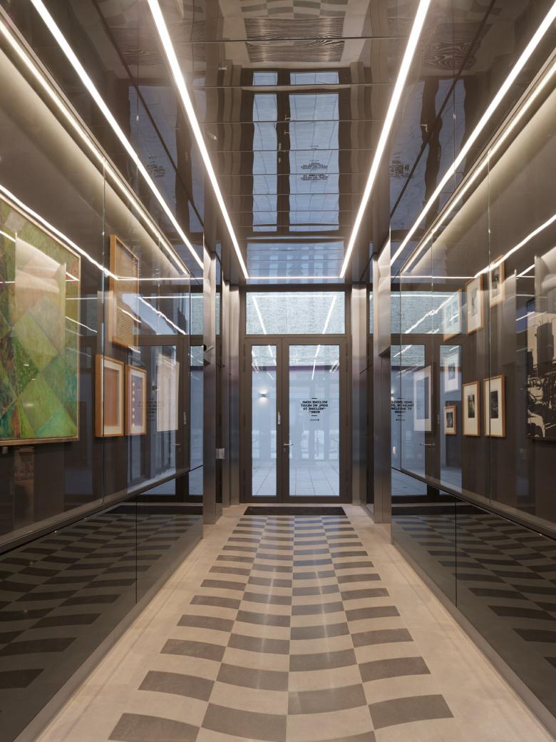 Das repräsentative Foyer des Haupteingangs wird von der Heinrich-Roller-Straße aus erschlossen. Als besonderes Designelement ist die Beleuchtung in die Decke des Eingangsbereiches integriert, hinterleuchtete Schaukästen in den Wänden sind für die Ausstellung von Kunstwerken vorgesehen.