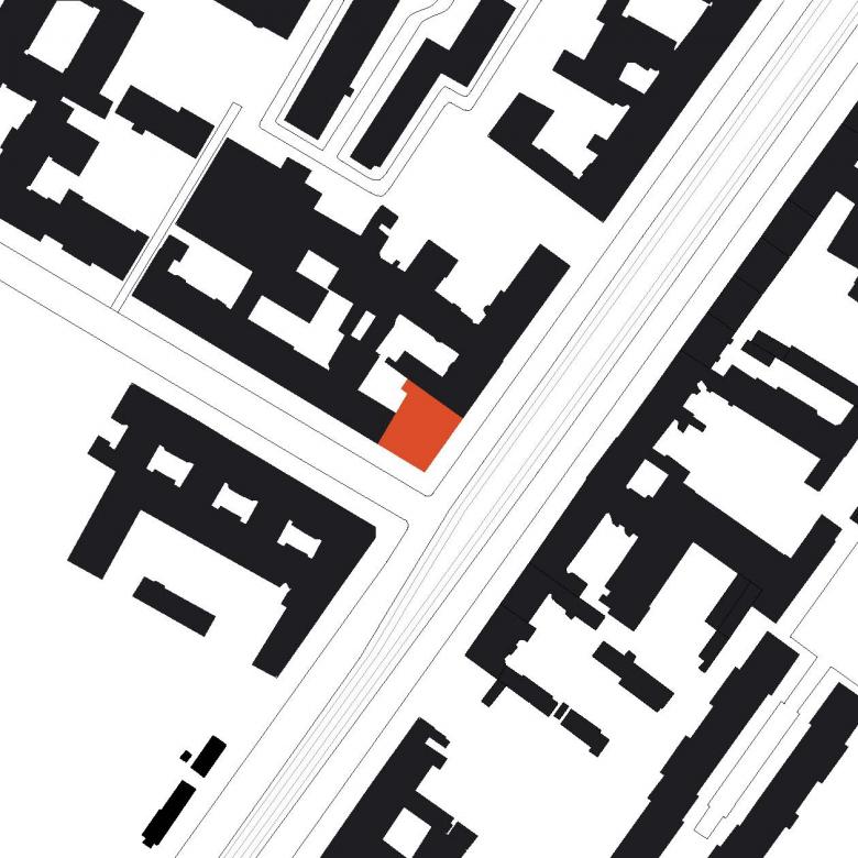 Der Baukörper umfasst sechs Vollgeschosse, die pro Mieteinheit als flexible Kombinationen aus Großraum-, Einzelbüros, Konferenz-, Meetingräumen und Coworking-Spaces genutzt werden können. Im Erdgeschoss befindet sich eine Büroeinheit mit Besprechungsbereichen und Open-Space – Arbeitsplätzen. Das oberste, fünfte Geschoss ist straßenseitig um ca. 1,60 m zurückgestaffelt, die Dachfläche, die über das 5. OG erschlossen wird, ist begrünt und teilweise als Dachterrasse ausgebildet. Das Untergeschoss ist für PKW-Stellplätze, Fahrradstellplätze und Technikräume vorgesehen.