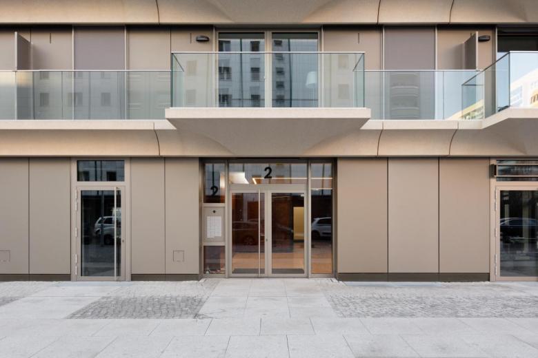 Das neue Wohngebäude Königstadt-Quartier befindet sich in Berlin-Friedrichshain in zentraler Lage zwischen dem Volkspark Friedrichshain und dem Alexanderplatz. Mit seiner zeitlosen und ruhigen Architektur, den unterschiedlichen Traufhöhen, passt sich das Gebäude in die urbane Atmosphäre und einfachen Riegelstrukturen rund um die Mollstraße ein und führt die typische Blockrandstruktur weiter, indem es die Flucht der vorhandenen Bebauung aufnimmt.