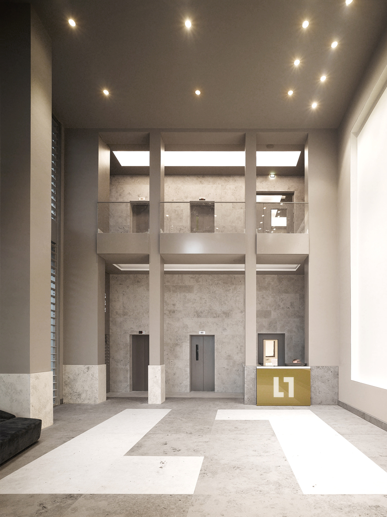Im Kellerbereich befinden sich haustechnische Erschließungs- und Technikflächen, der Müllsammelraum, ein Fahrradabstellraum, Wohnungsabstellräume und ein Lager. Die Erschließung des Gebäudes erfolgt über eine Doppelaufzugsgruppe, von denen einer als Feuerwehraufzug fungiert.