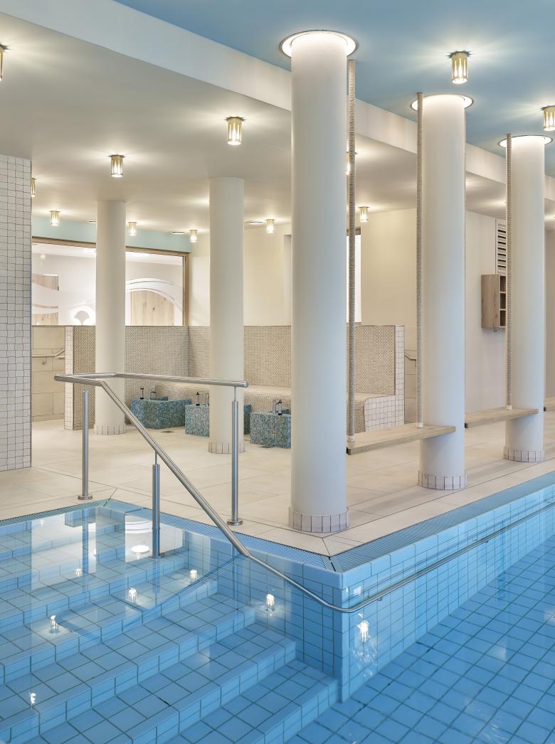 Zusätzlich zu den seniorengerechten Wohnungen wurde ein breites Serviceangebot für die Bewohnerinnen und Bewohner geschaffen, so beispielsweise im U-Förmigen Gebäude am Riviera-Saal ein großzügiger Empfang mit Concierge, Gastronomie, Räume für Fitness und Wellness inklusive eines Schwimmbads, sowie Gemeinschaftsräumen. Eine ambulant betreute Wohngemeinschaft und eine Tagespflege in den gegenüberliegenden Bauteilen runden das Angebot im Quartier ab.