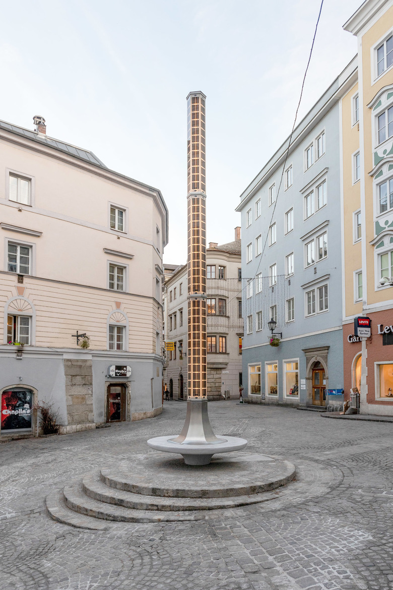 Als „Symbol“ der Erneuerung wird das Thema des Brunnens neu interpretiert und der Linzer Altstadt wieder ihr markantes Zentrum zurückzugeben.