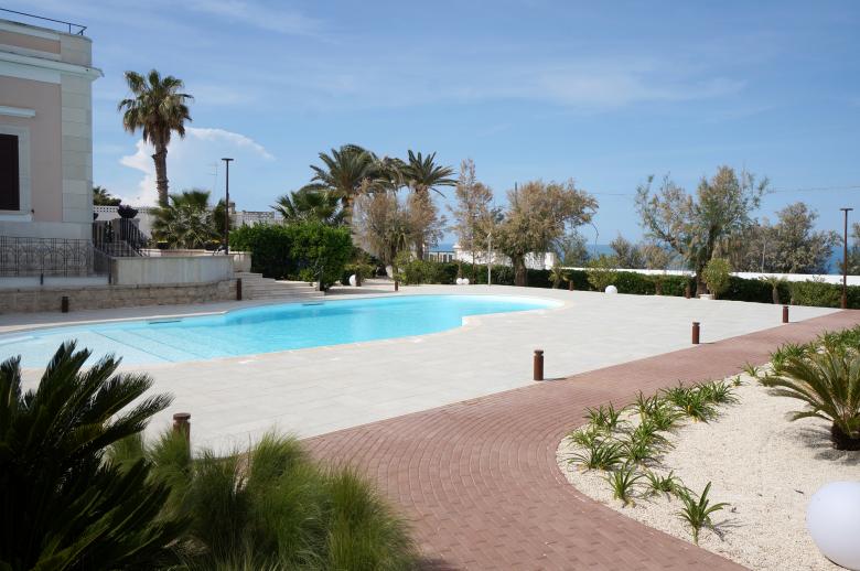 The volume of Villa Emy can be glimpsed at the far end of the garden, nestled among palm trees and tamarisks, just beyond the Trani stone wall that defines the panoramic promenade along Bisceglie’s seafront. Its character as a historic piece of architecture makes it a landmark – a point of interest that stands out for its aesthetic value and its role as a vessel of memory within a natural landscape. This setting, once agricultural, became urbanised and hybridised in the post-war years with the construction of indistinct, heterogeneous residential and tourist buildings.