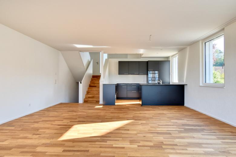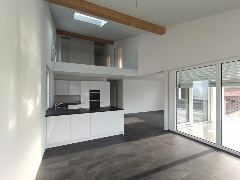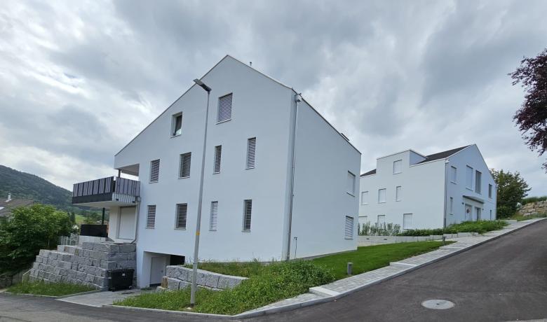 Am nördlichen Siedlungsrand von Schupfart, in leichter Hanglage, liegt die ansprechende Überbauung „4 Linden“, bestehend aus einem Mehrfamilienhaus mit 2 Wohnungen, verteilt auf 2 Etagen, sowie einem Doppeleinfamilienhaus und bietet somit ein Zuhause für Alt und Jung. Beide Gebäude sind durch eine gemeinsame Tiefgarage erschlossen, welche sich, dank der direkten Zufahrt ohne Rampe, nahtlos in die Umgebung einfügt. Die Gegebenheiten vor Ort wurden optimal genutzt. So wurde die Überbauung beispielsweise durch das neu entstehende Fernwärmenetz erschlossen. Die Planung dafür erfolgte in enger Zusammenarbeit mit dem AEW und die Anlage kann 2024 erfolgreich in Betrieb genommen wer-den. Auch der Innenausbau wurde schlicht und modern gestaltet und wirkt auch in Kombination mit den individuellen Käuferwünschen zeitlos und elegant.