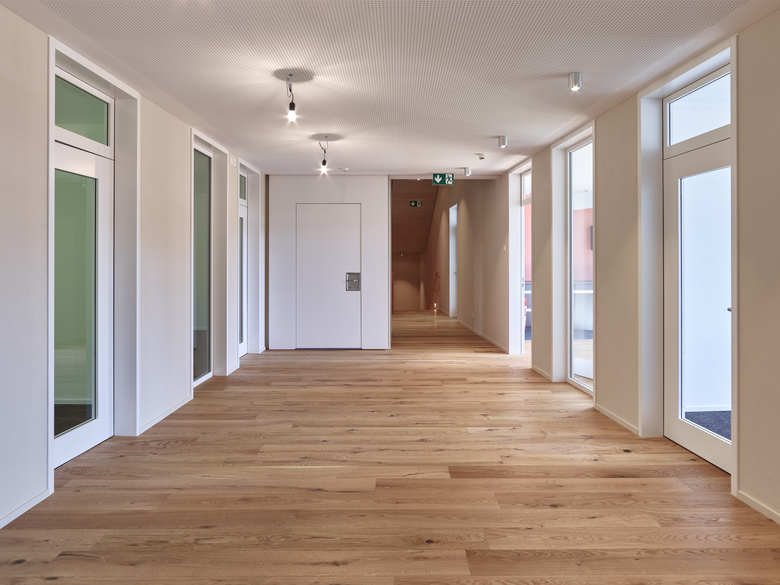 Durch den Umbau wird ein grosszügiger Eingangsbereich freigespielt, welcher die bestehenden Zugänge der Propstei- und der Martinsgasse verbindet. Die zentralen Erschliessungsbereiche er-lauben eine flexible Einteilung der an den Fassaden liegenden Arbeitsbereiche.