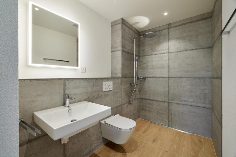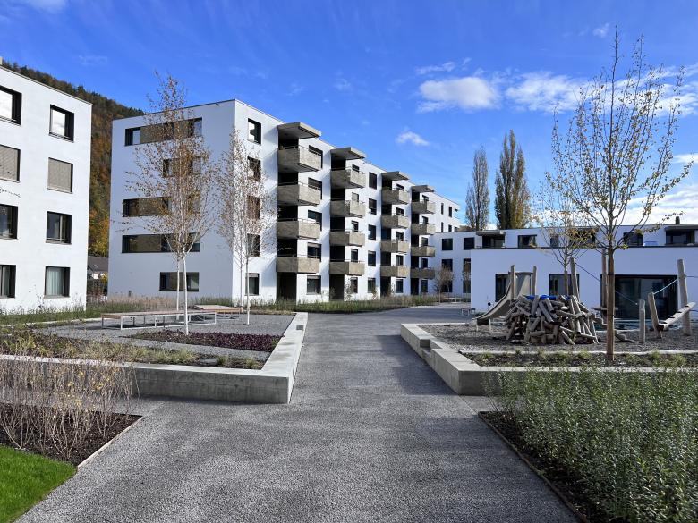 Die zwei Baukörper der Wohnüberbauung bilden einen grosszügigen Innenhof. Die Wohnungen mit modernen grosszügigen Grundrissen und Balkonen teilen sich in Miet- und Eigentumswohnungen auf. Die Grundrisse weisen Nassräume in der Gebäudemitte auf und sind klar strukturiert.